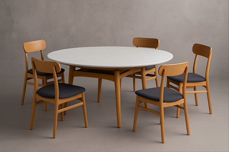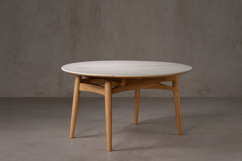 What makes Kepler truly unique is its innovative design: it seamlessly extends from a rectangular dining table into a round 130cm diameter surface, comfortably seating up to 6 guests. Whether for casual family meals or elegant dinner gatherings, Kepler adapts effortlessly to your needs.